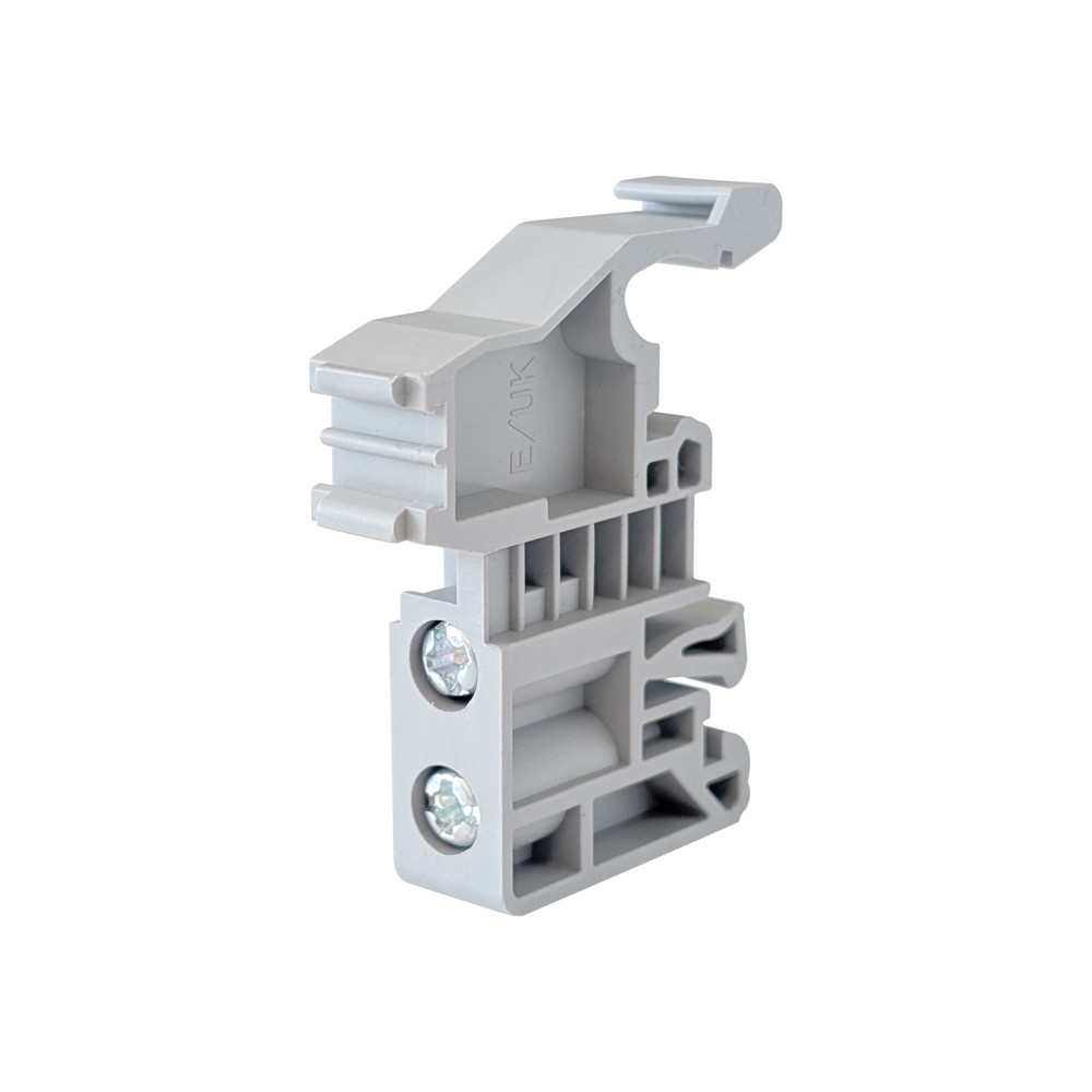 The Echo Industries end stop for DIN-rail terminals secures the end plate firmly in place.