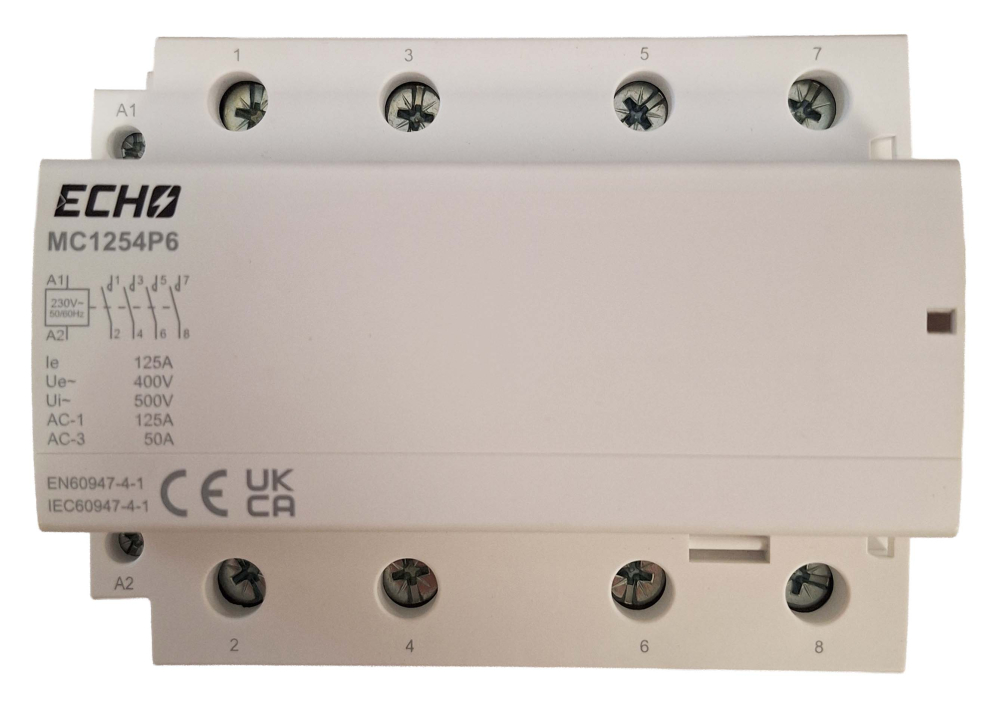 This 6 module modular contactor with 4 normally open contacts is designed for dependable control of high power circuits in industrial and commercial installations. Rated at 125A AC1 with a 130V AC coil, it delivers reliable switching performance in demanding applications.
