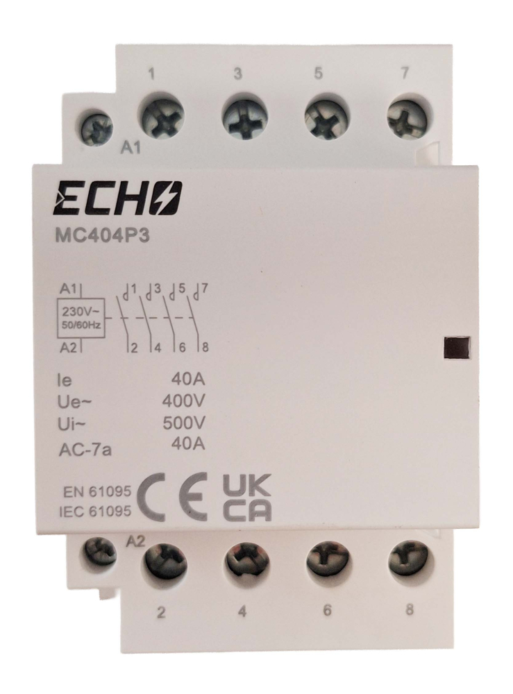 This 3 module modular contactor with 4 normally open contacts is designed for dependable control of high power circuits in industrial and commercial installations. Rated at 40A AC1 with a 230V AC coil, it delivers reliable switching performance in demanding applications.