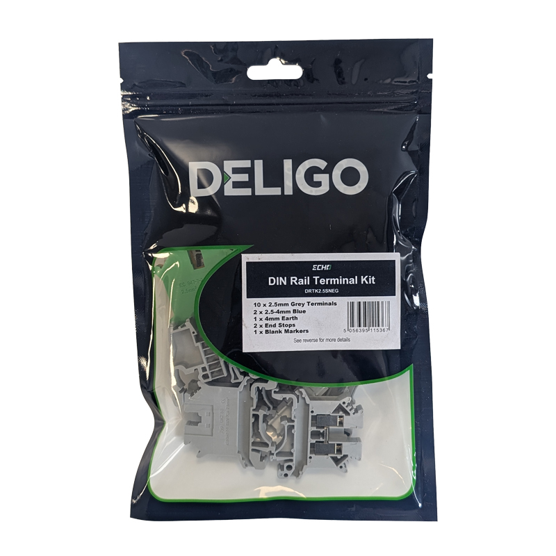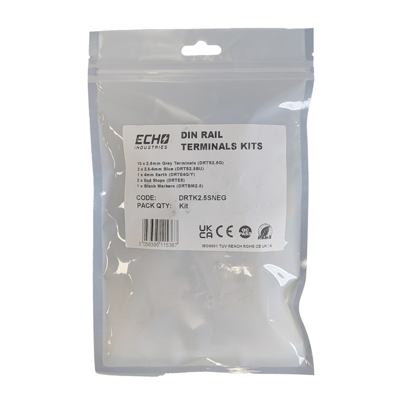 10 x 2mm Grey, 2 x 2.5mm Blue, 1 x 2.5mm Earth DIN Rail Terminal Kit